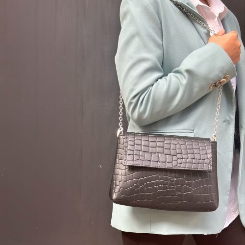Leather Shoulder Bag Crossbody Purse Silver Chain Strap