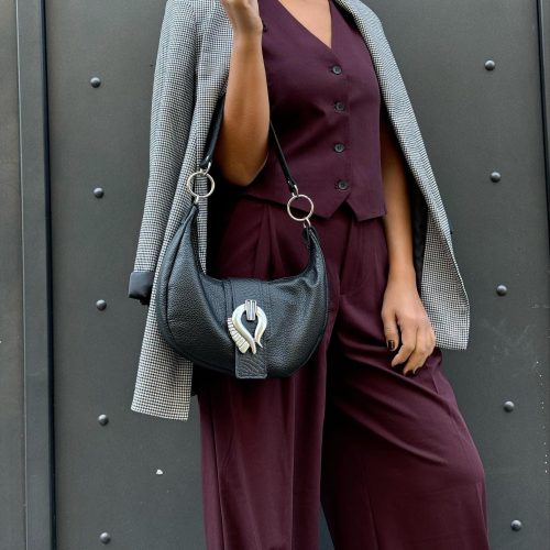 Black Leather Shoulder Bag Crossbody Purse Women’S Handbag