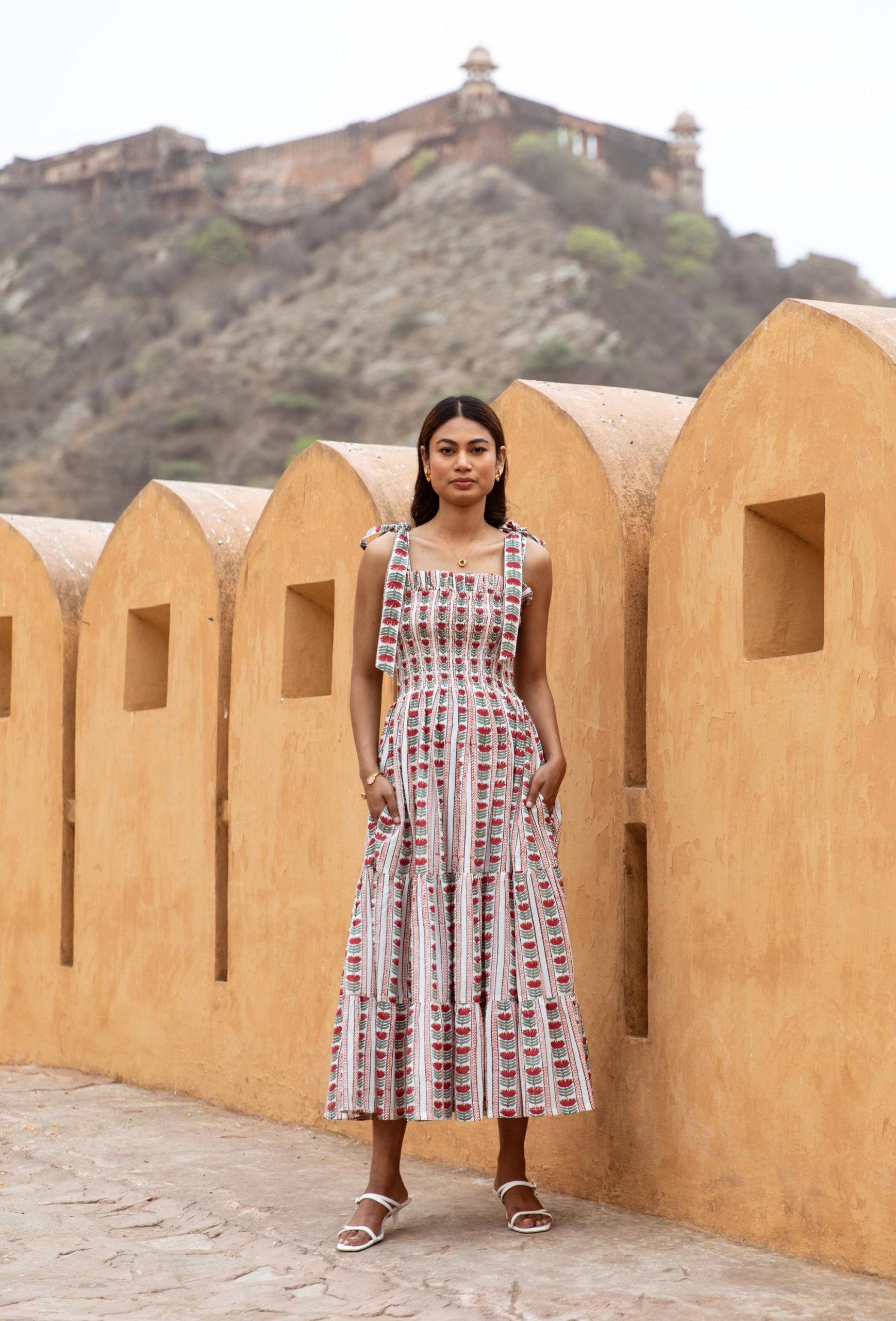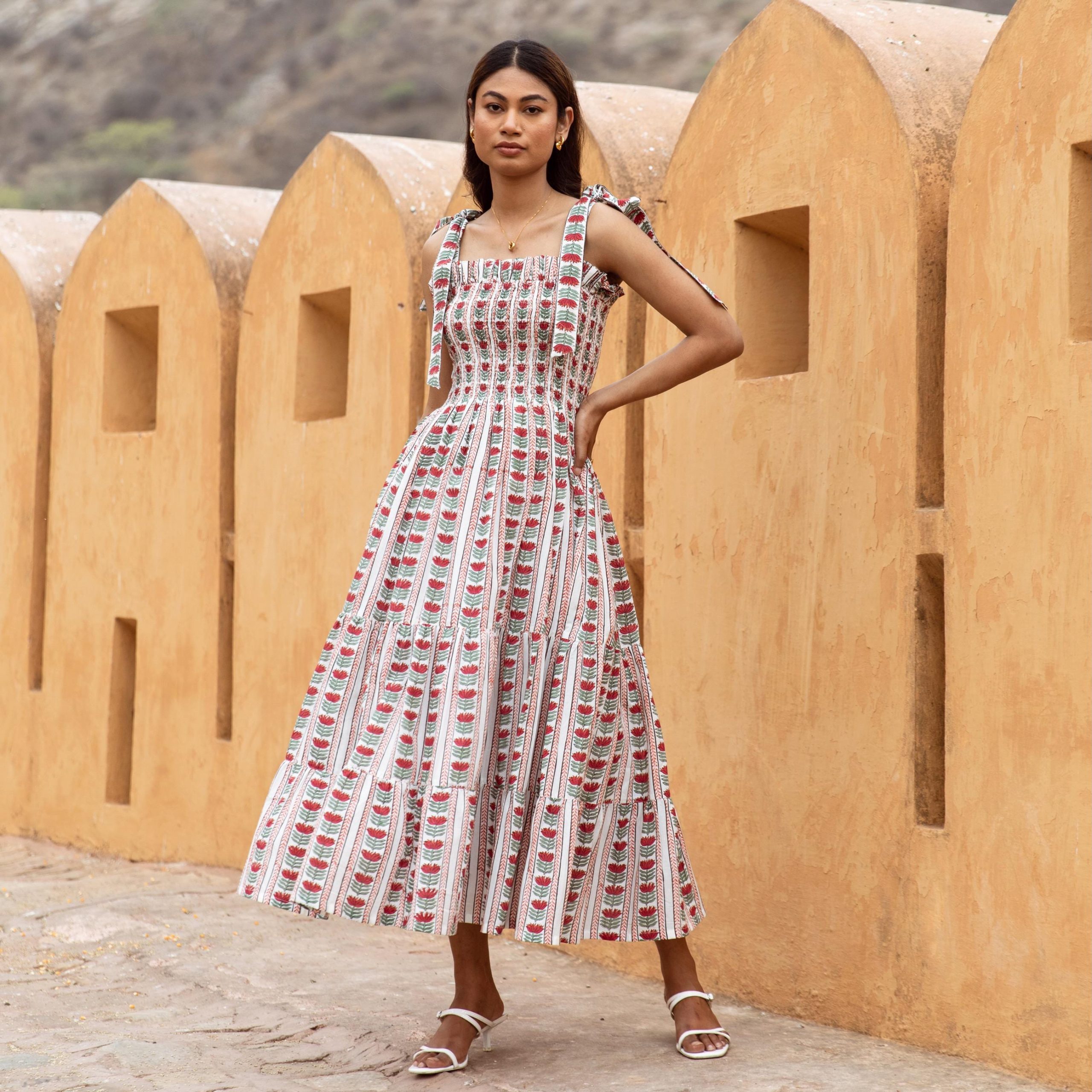 The Flo Cotton Block Print Sundress Persian Red