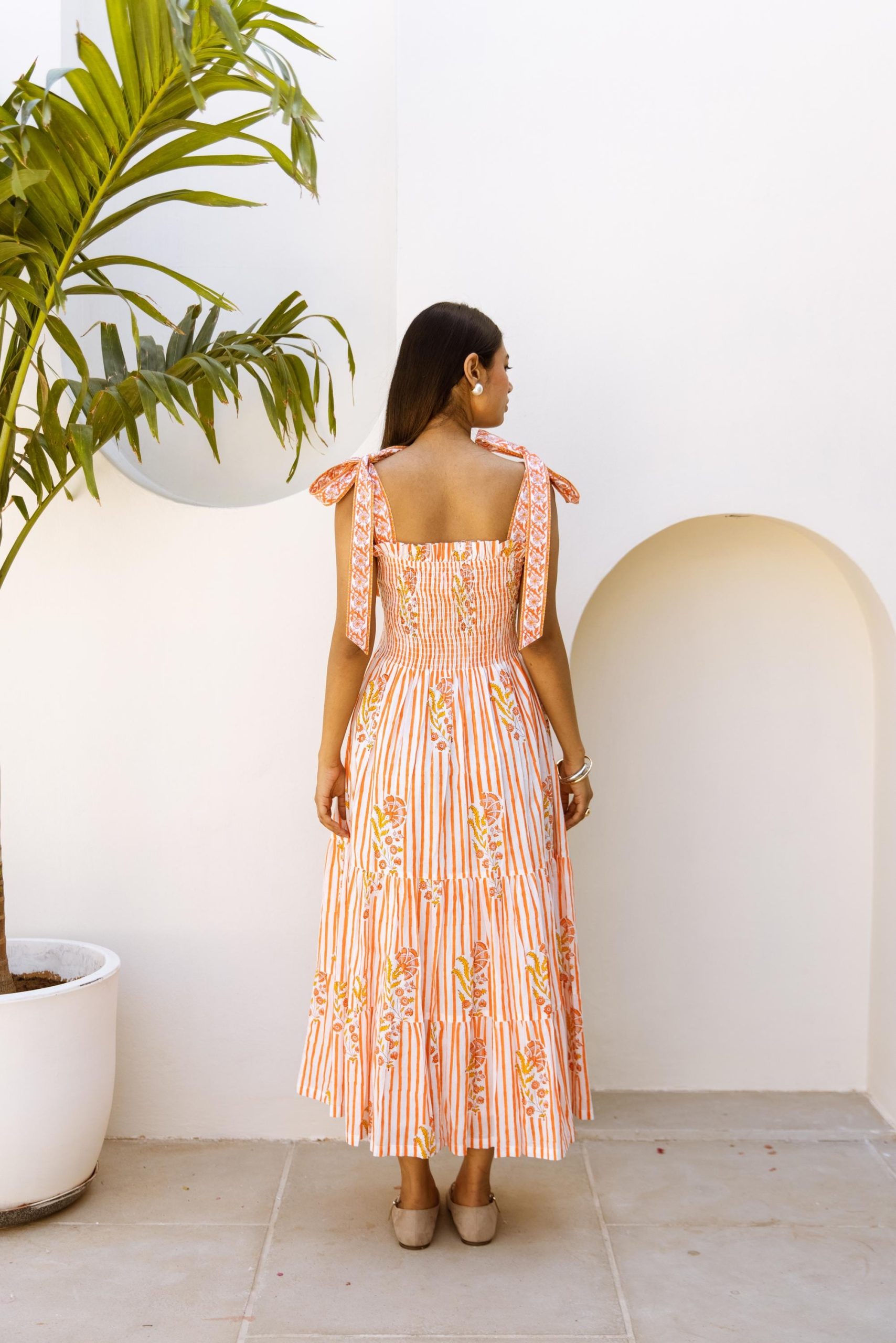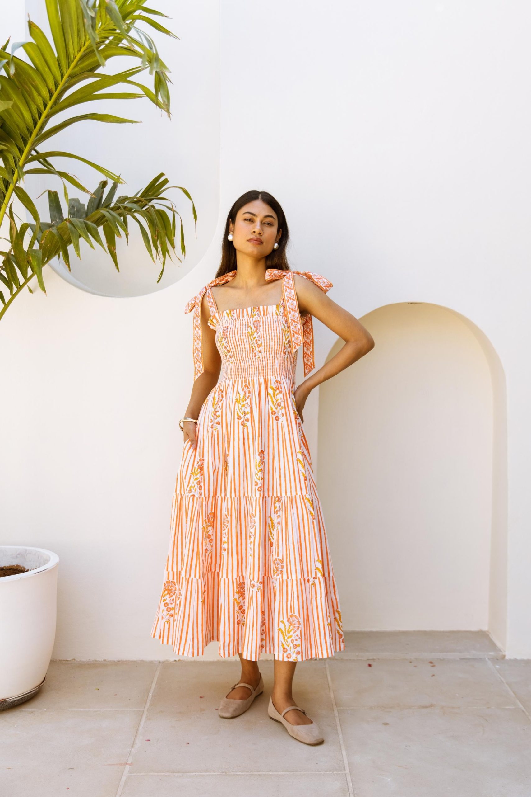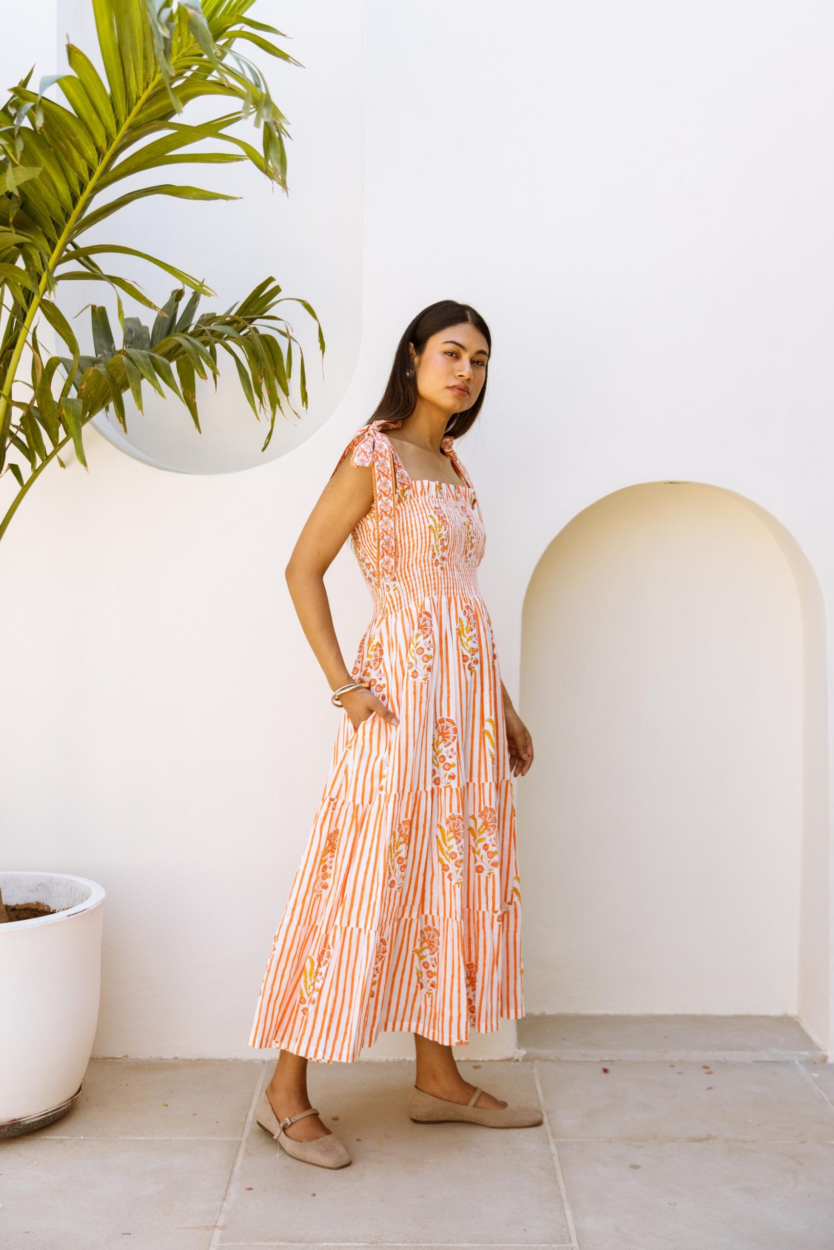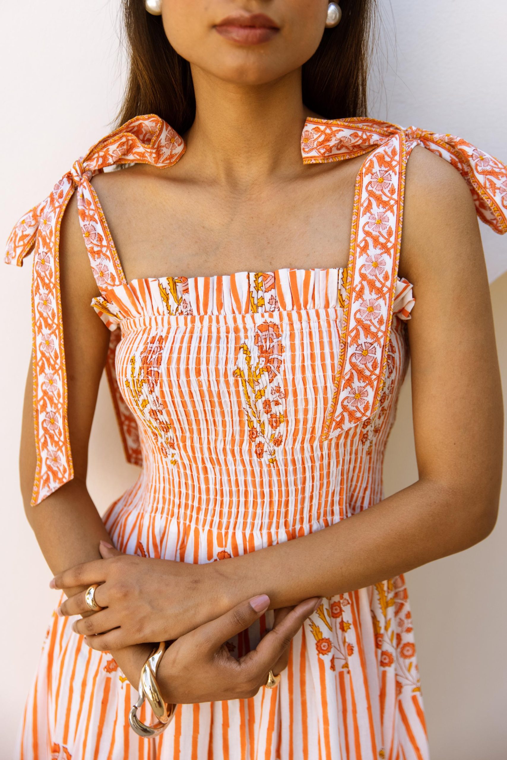 The Flo Cotton Block Print Sundress Tangerine Mughal